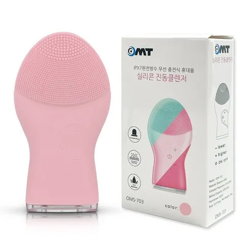 오엠티 휴대용 충전식 실리콘 진동클렌저, OMS-703, 베이비핑크